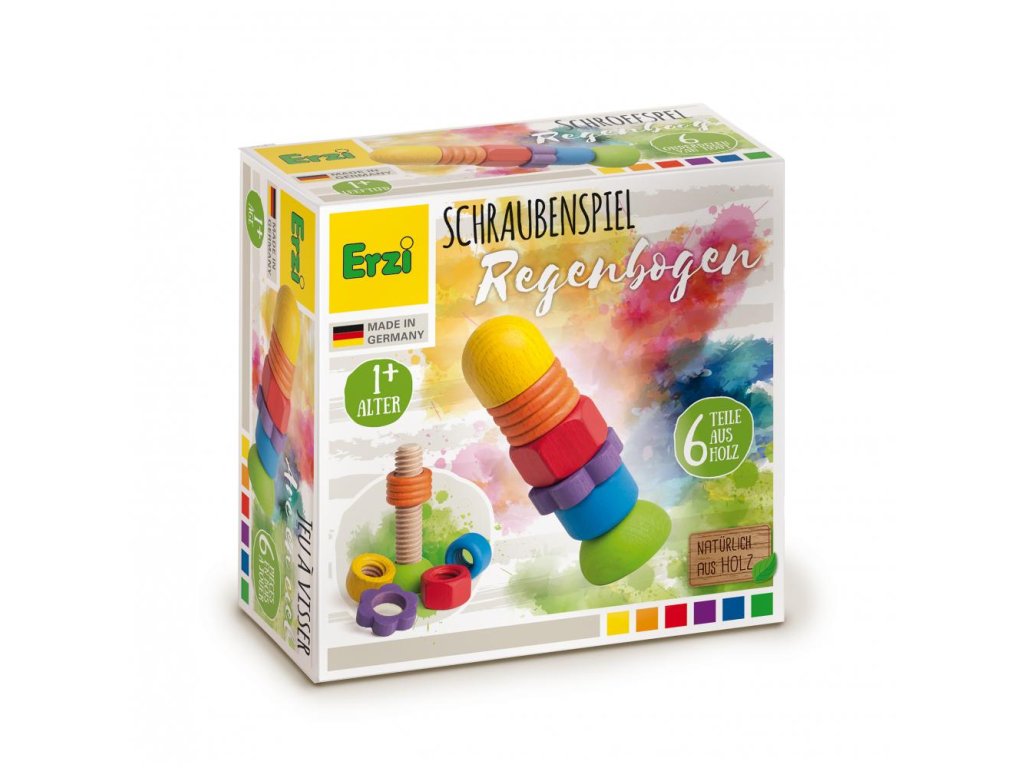 Barevná dřevěná duha plná radosti a učení! Šroubuj, navlékej a objevuj barvy s touto roztomilou hračkou pro nejmenší. 6 dílků, které procvičí šikovné prstíky a přinesou spoustu zábavy.