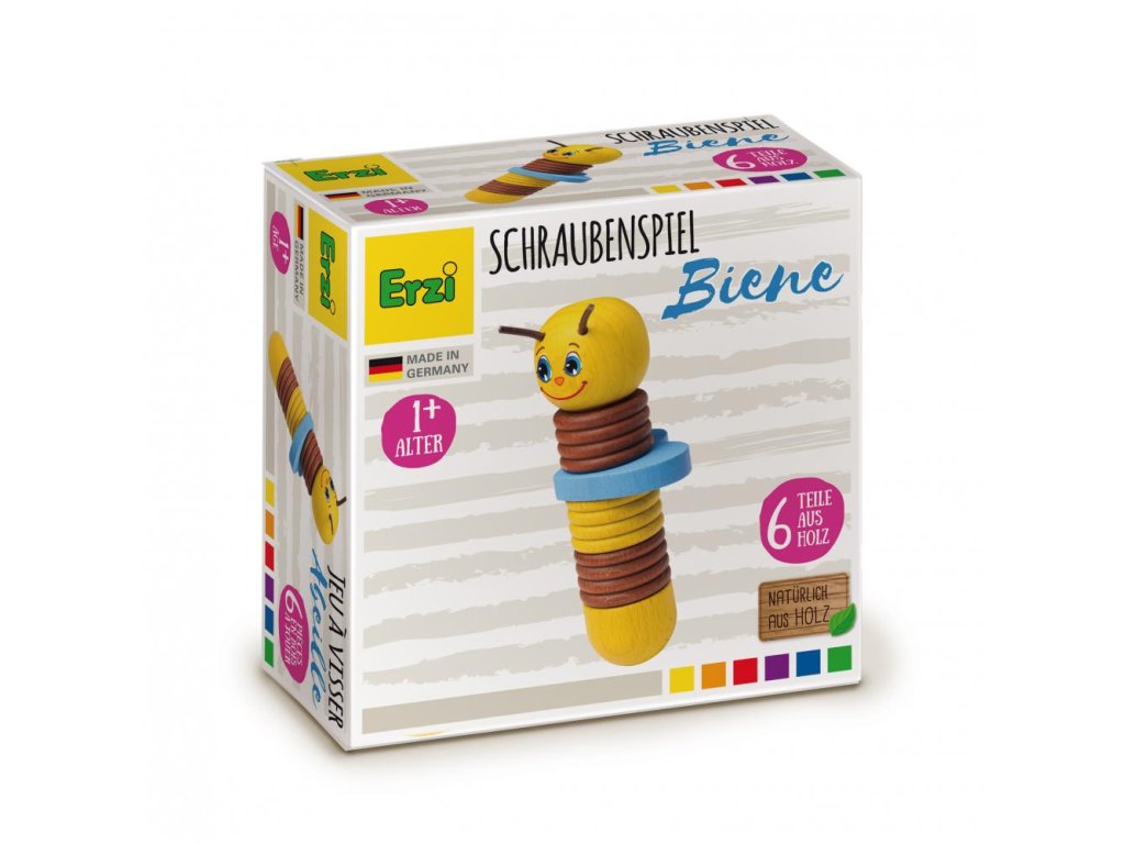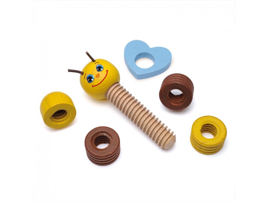 Roztomilá dřevěná včelka, která učí šroubovat a skládat. Perfektní první stavebnice pro nejmenší ručičky. 6 dílků, nekonečná zábava a spousta nových dovedností.