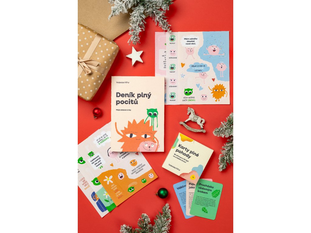 Obsah balíčku: Deník plný pocitů, 3 sady samolepek, Karty plné pohody