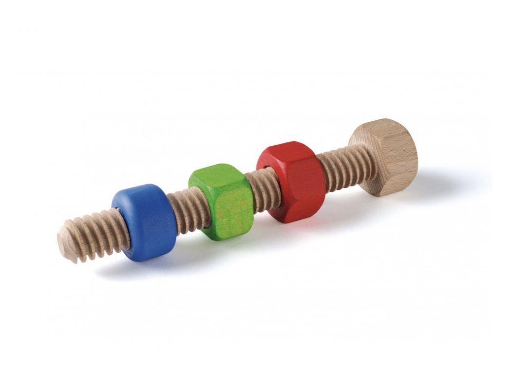 Dřevěný terapeutický šroub je univerzální pomůcka pro nácvik jemné motoriky ruky a prstů. Díky různým tvarům matek a barevnému trojbarevnému systému umožňuje postupné zvyšování obtížnosti cvičení a snadnou komunikaci mezi terapeutem a klientem.